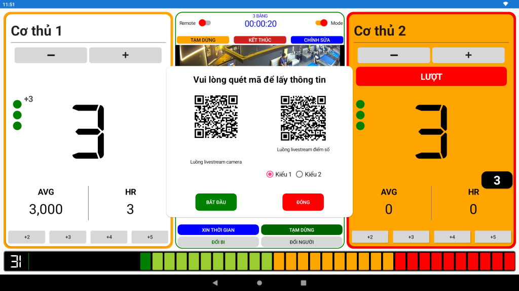 • Cấu hình phần mềm Billards BigScore đã bật tính năng phát trực tiếp